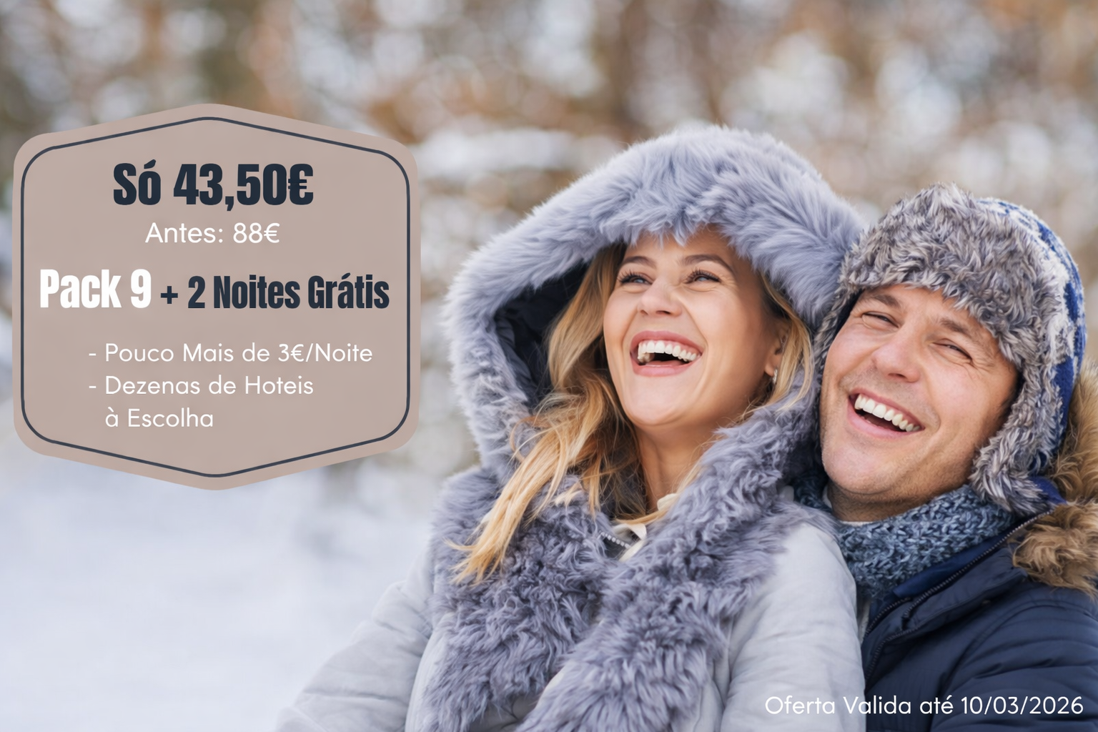 PACK 9 Noites (+ 2 Noites de Oferta) para 2 pessoas, por apenas 49,50€.